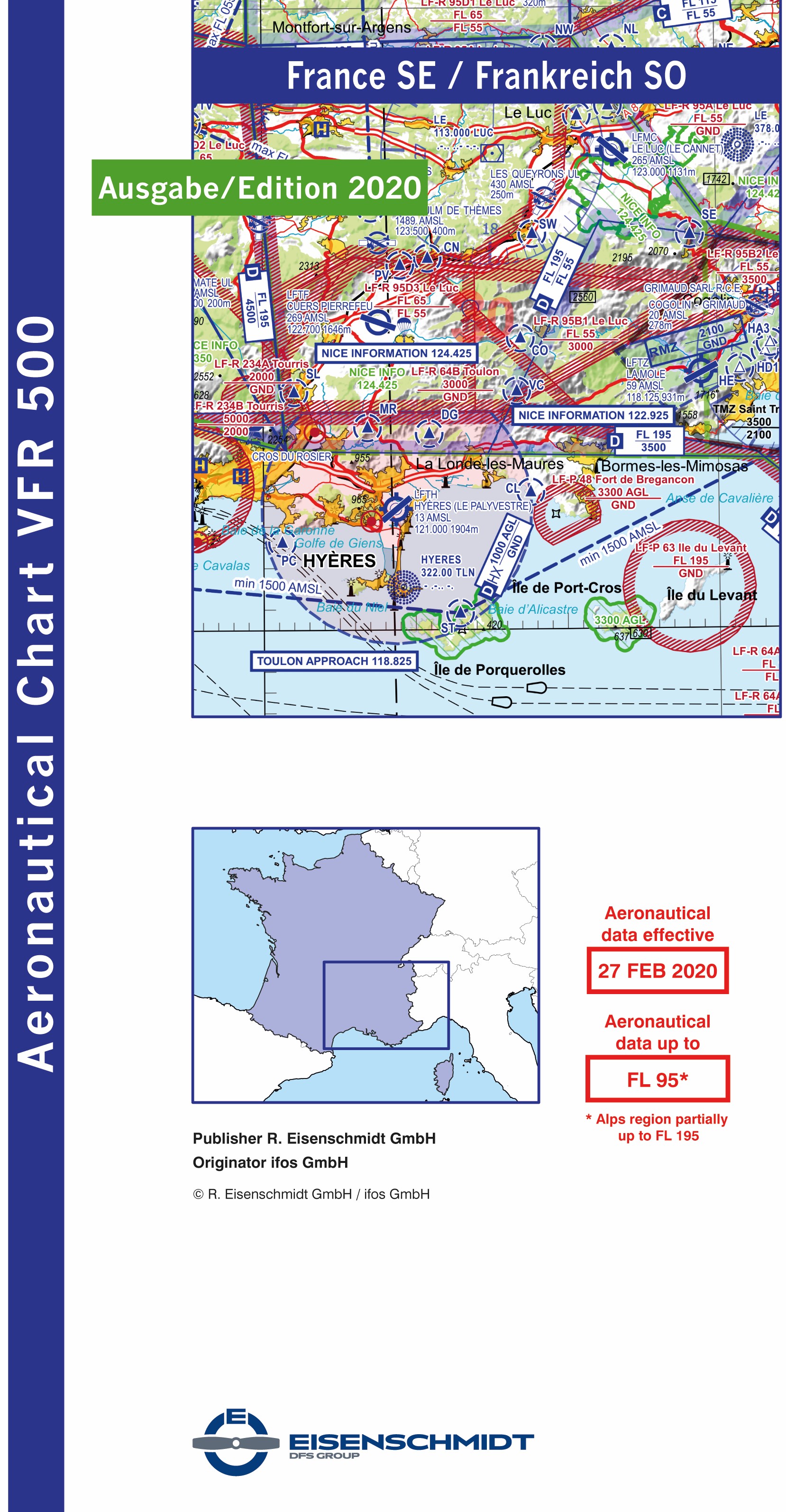 Die V500-Serie der europäischen Luftfahrtkarten 1:500 000 wird auch dieses Jahr wieder um ein neues Kartenblatt erweitert. Ab sofort gibt es die Karte VFR 500 France Southeast (SE), die den südöstlichen Teil von Frankreich abdeckt. » Zur Pressemitteilung
