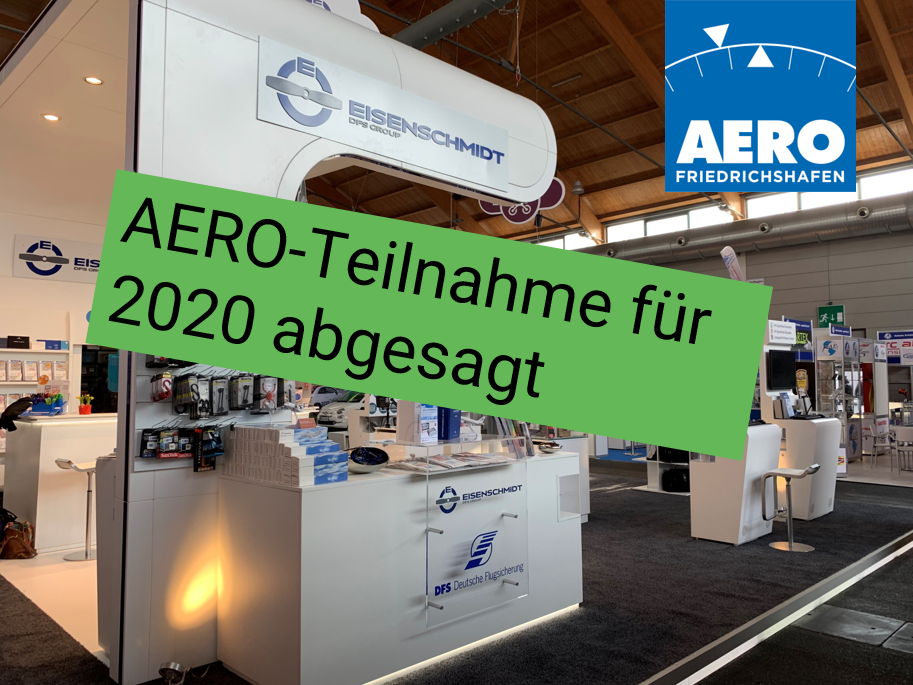 Aufgrund der Ausbreitung des Corona-Virus (SARS-CoV-2) nehmen Eisenschmidt, DFS Deutsche Flugsicherung GmbH und Aviationexam nicht an der AERO teil. Die größte europäische Luftfahrtmesse sollte vom 1. bis 4. April 2020 in Friedrichshafen stattfinden. » Zur Pressemitteilung